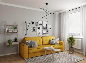 Спинка, выполненная в обивочной ткани, позволяет ставить диван в центре комнаты и зонировать пространство.
