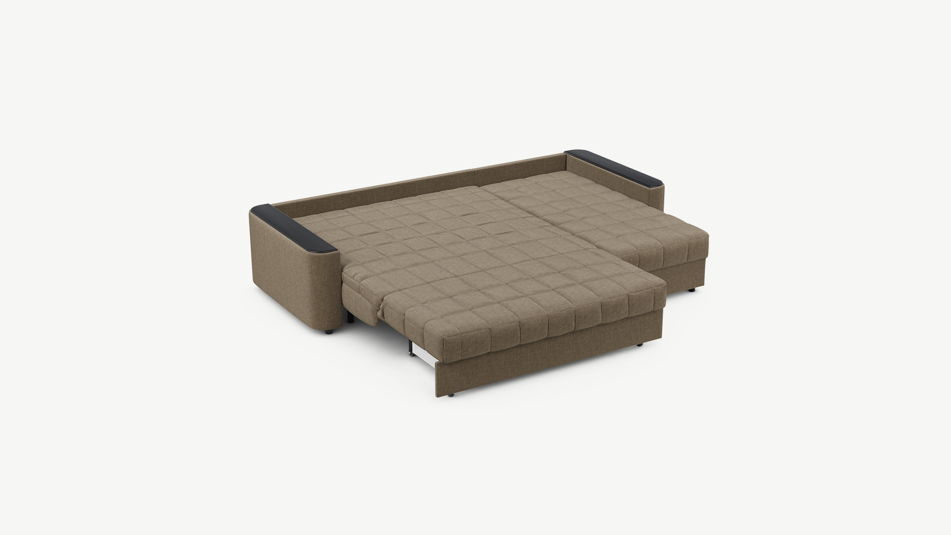 Оттоманка обеспечивает дополнительное пространство для отдыха, благодаря которому Вы можете располагаться с максимальным комфортом, вытянув ноги. Под данной секцией расположен вместительный бельевой короб.