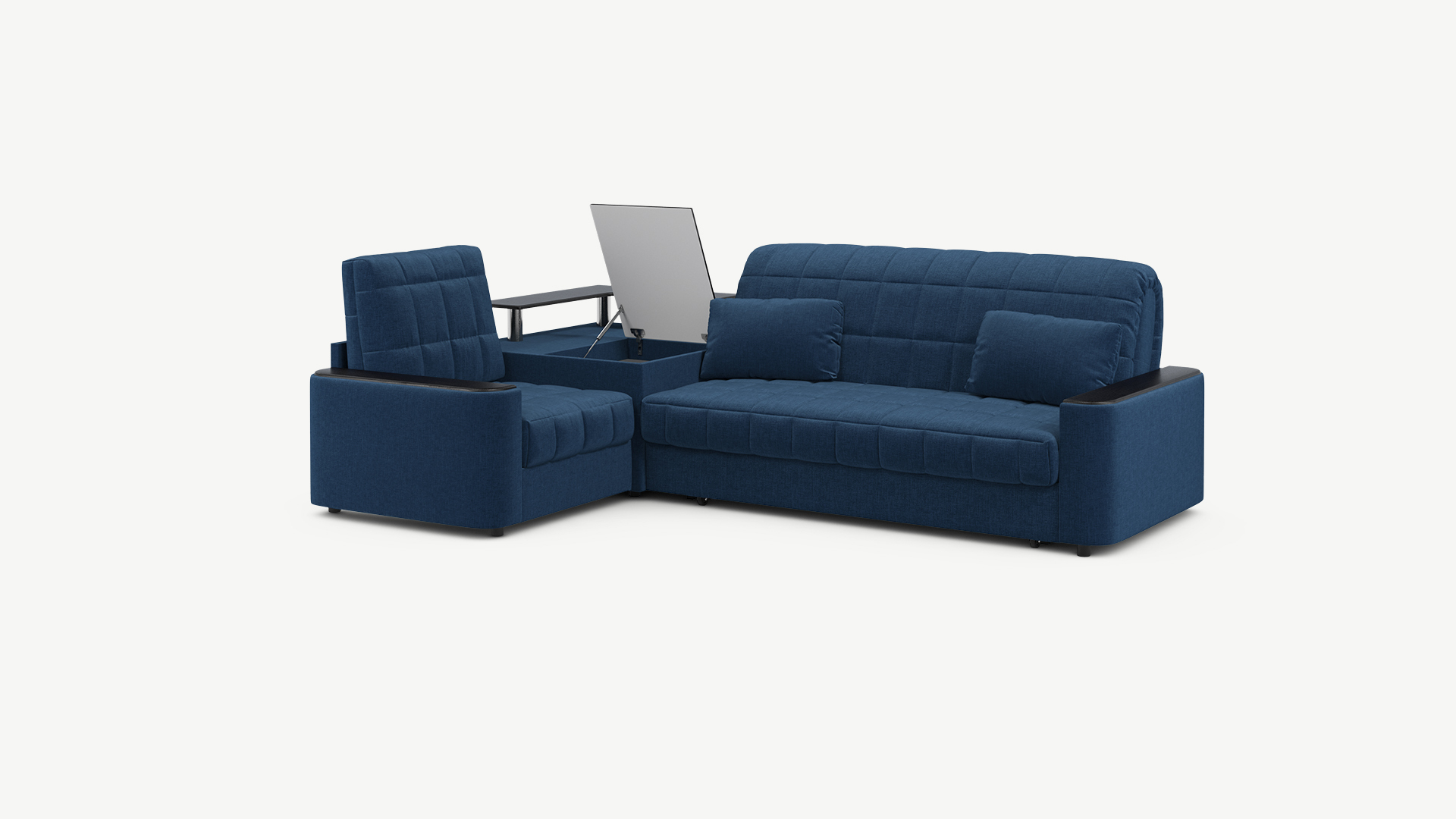 Выбирая угловой диван со столиком, Вы сможете проводить время с максимальным комфортом, многократно повысив функциональность дивана. Все дело в том, что под столешницей модуля расположена вместительная емкость для хранения. Кроме того, поверхность столика — идеальное пространство для чаепития в приятной компании, а также место для множества актуальных мелочей — от ноутбука до косметики.