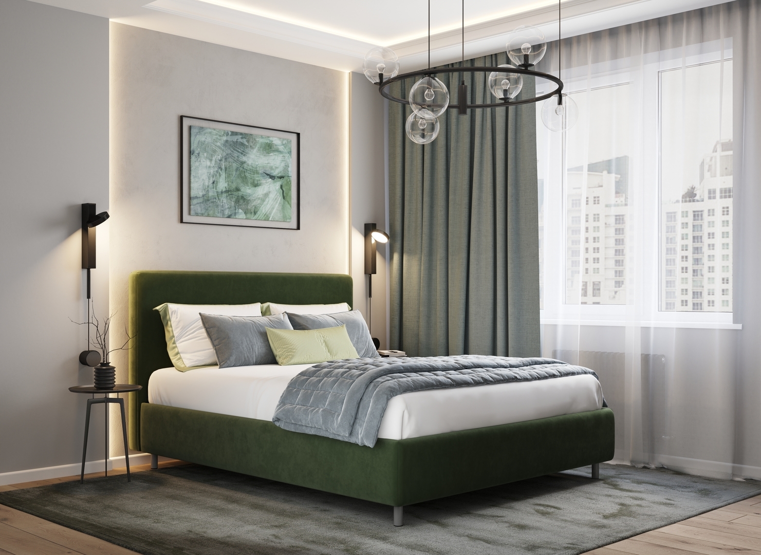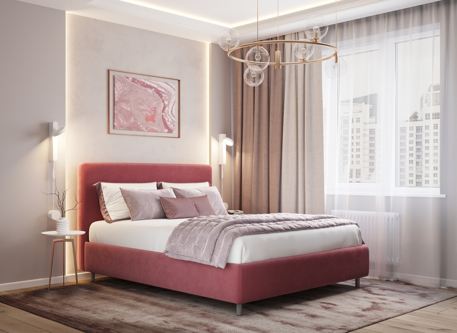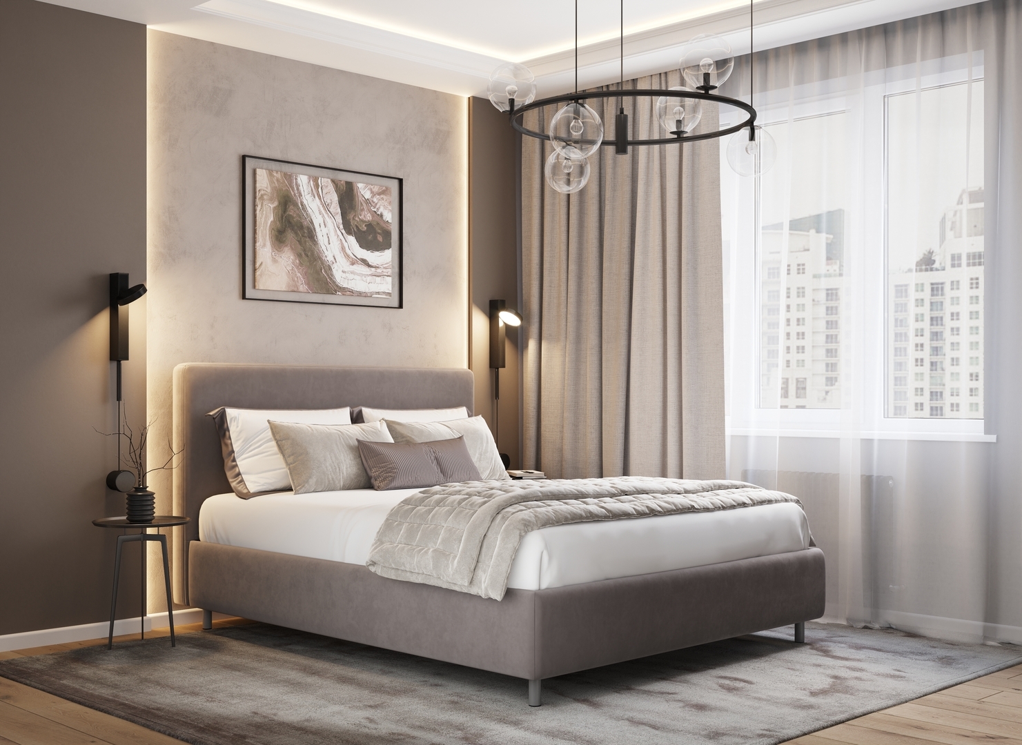 Творческий подход к выбору обивочного материала меняет образ дизайна. Велюр за счет своей бархатистой фактуры привносит в пространство шика и утонченности. Шенилл дополняет оформление спальни природными текстурами, создавая атмосферу тепла и уюта.