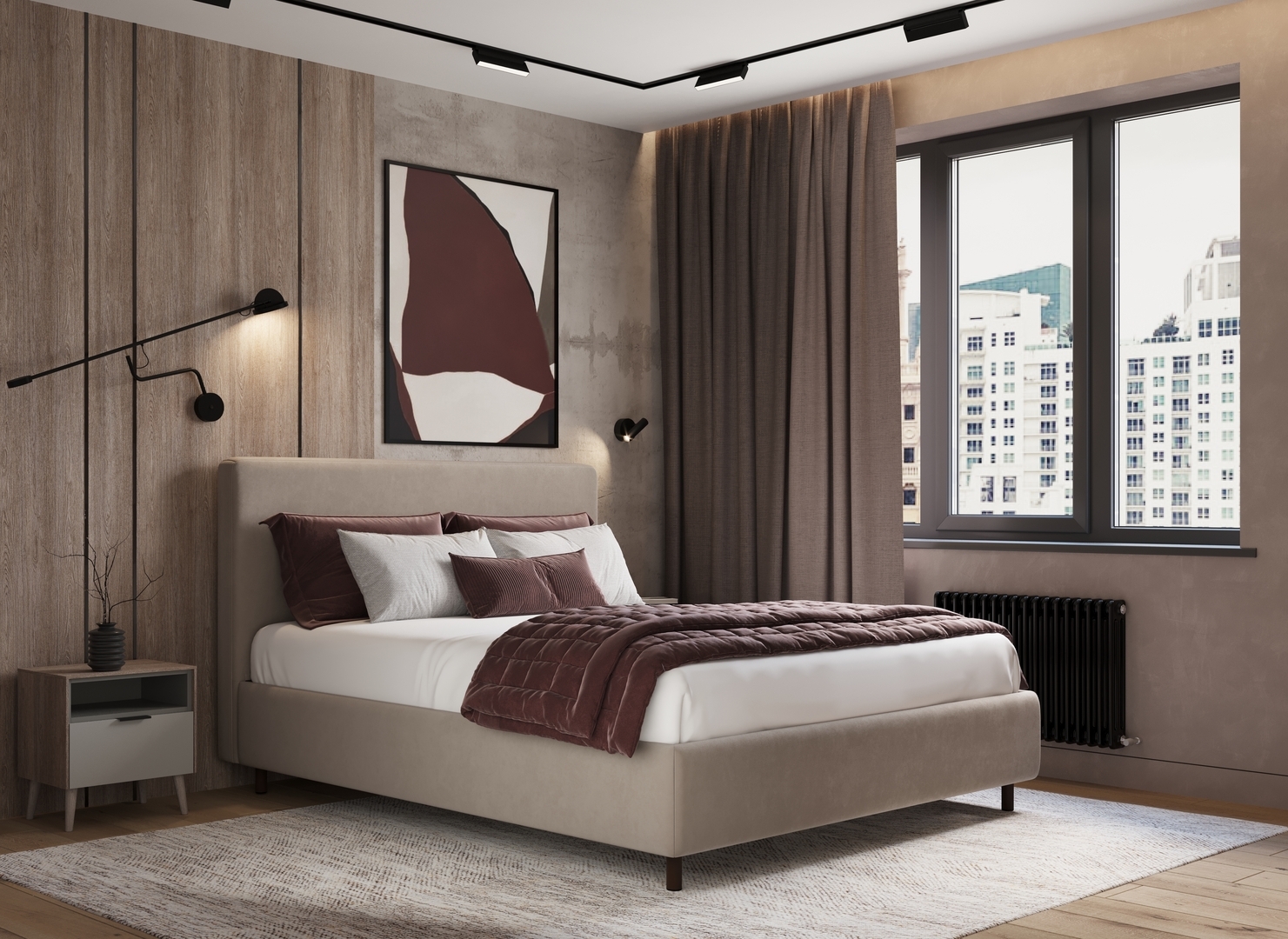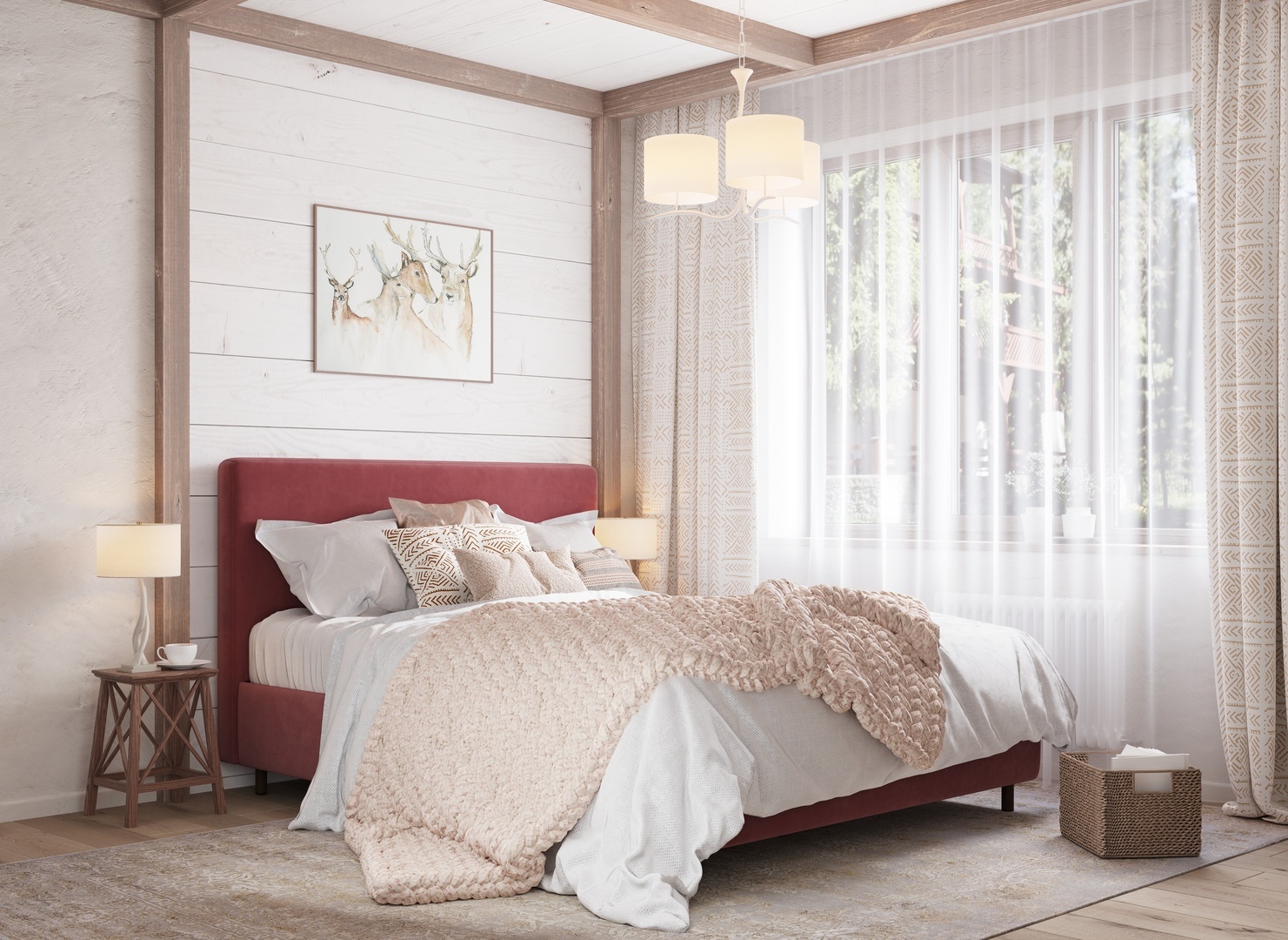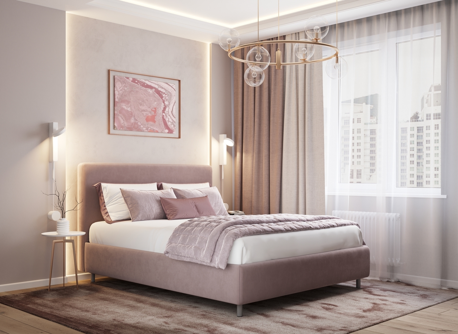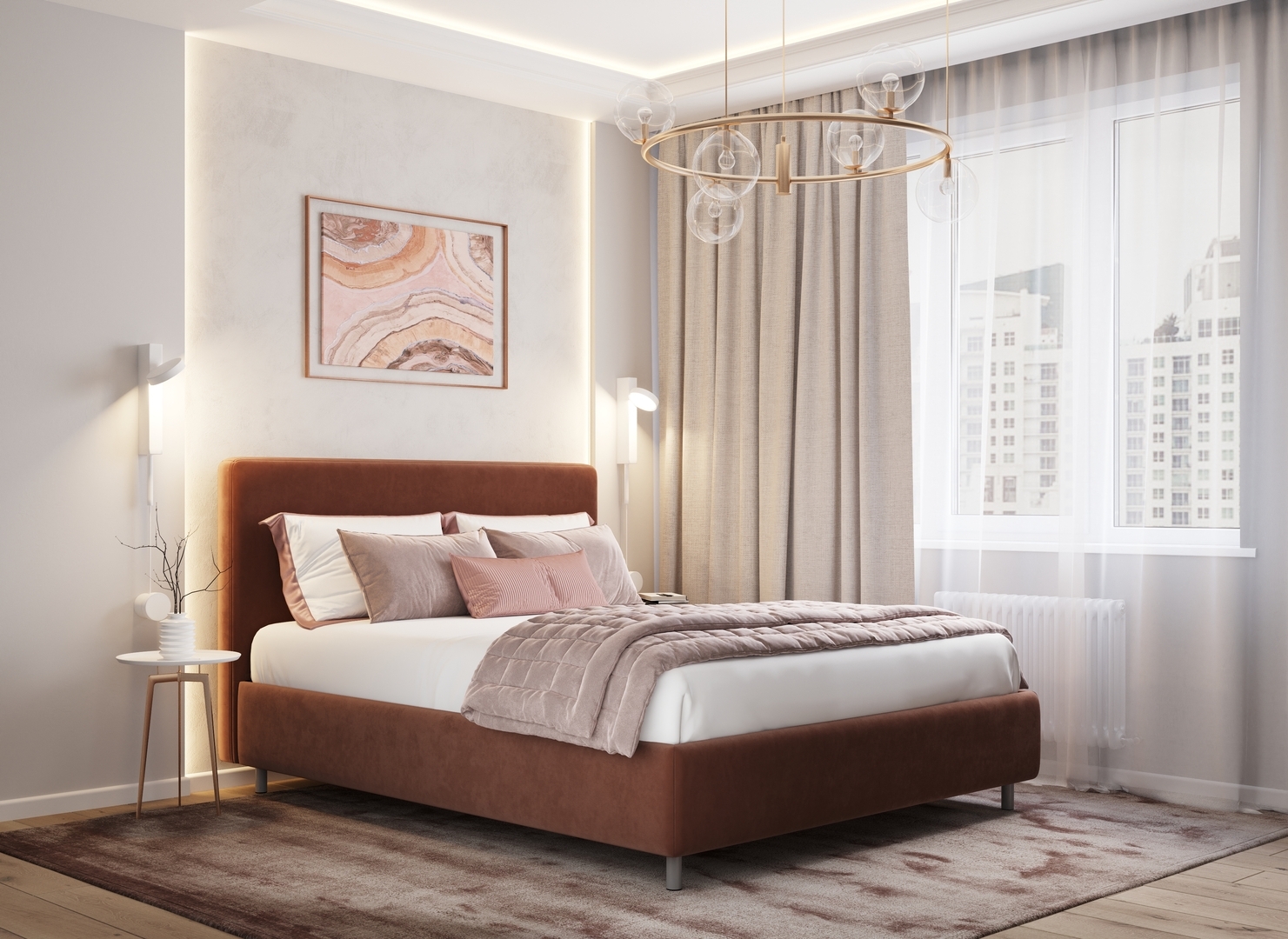 Творческий подход к выбору обивочного материала меняет образ дизайна. Велюр за счет своей бархатистой фактуры привносит в пространство шика и утонченности. Шенилл дополняет оформление спальни природными текстурами, создавая атмосферу тепла и уюта.