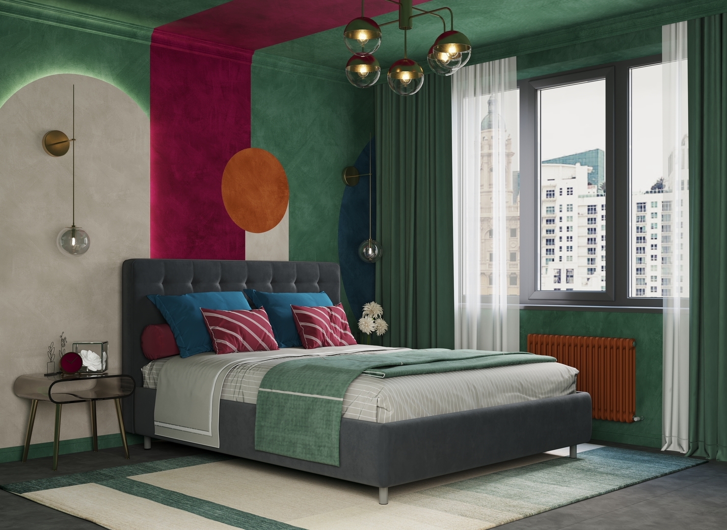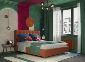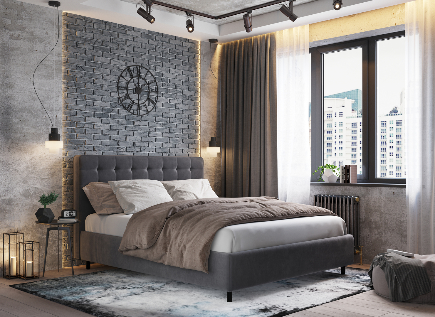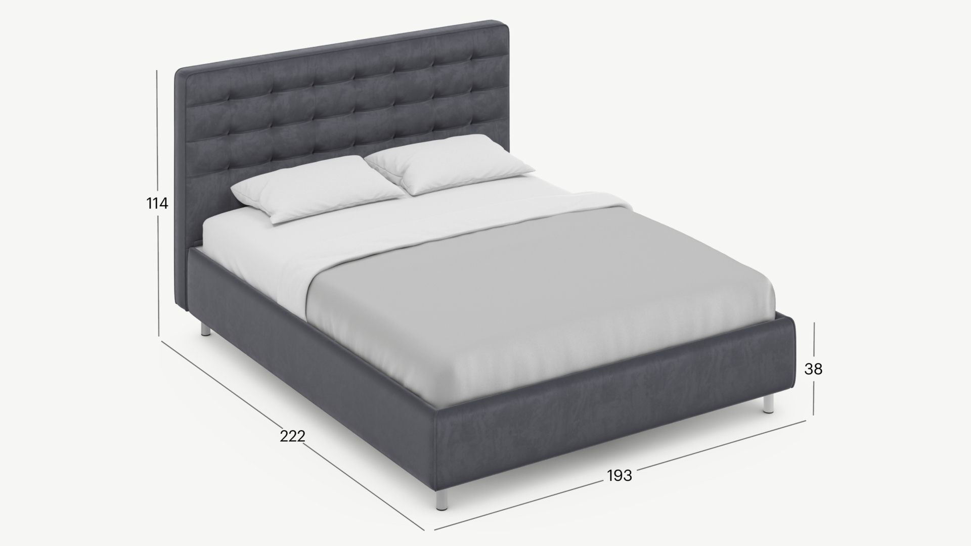 Оформите образ кровати, выбирая обивочный материал, который подчеркнет звучание Вашей спальни и отразит Ваш вкус. Обратите внимание на однотонный гладкий велюр, который усиливает объемную фактуру стежки.