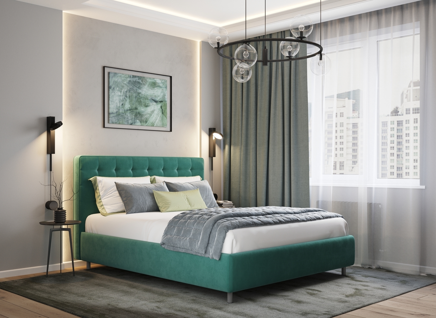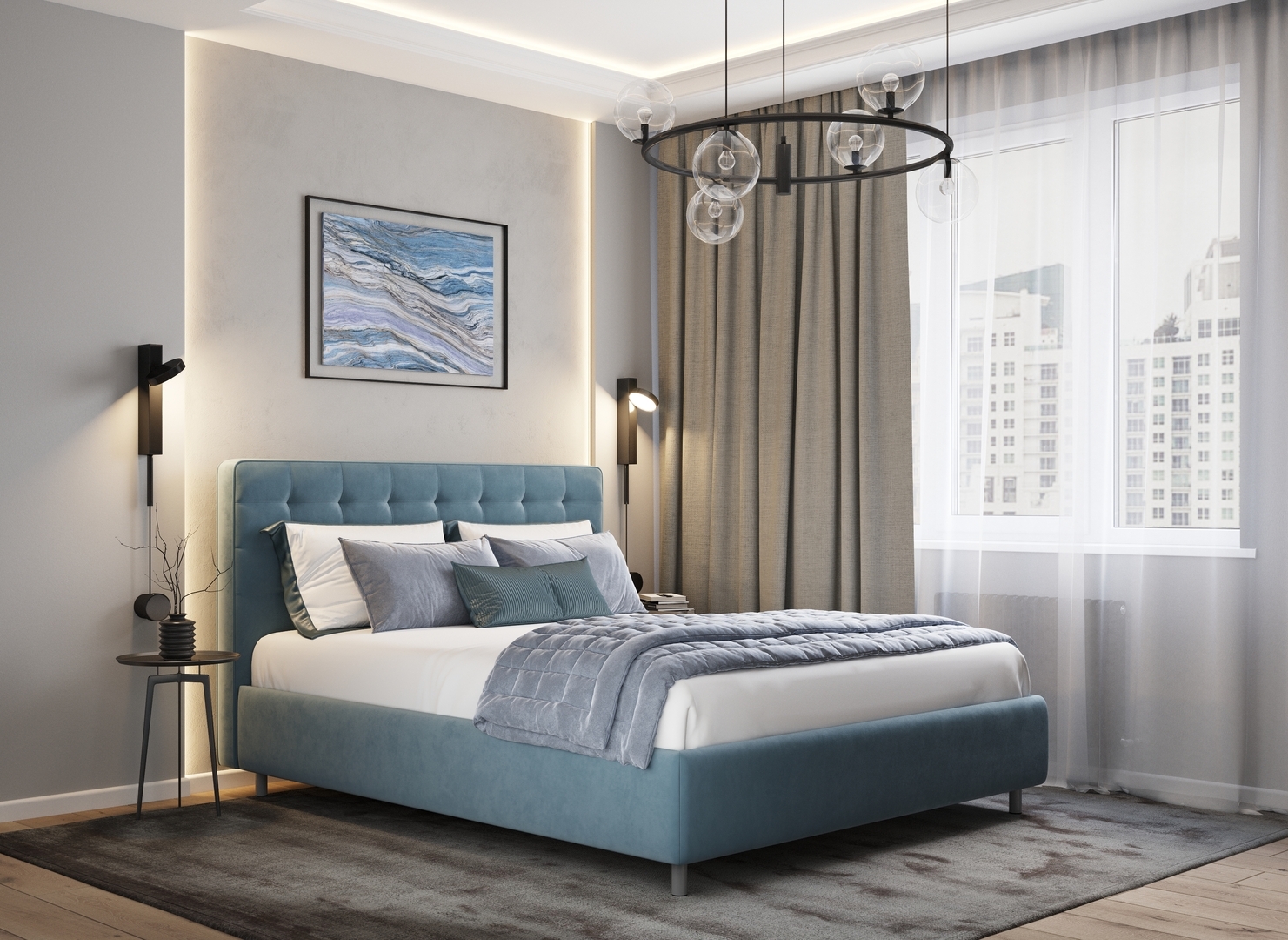 Заказали кровать с подушками-валиками, очень необычный дизайн нам показался. Выбрали высокие опоры для удобства в уборке, а изголовье не стали брать высокое, больше понравился низкий вариант. Приятно, что в магазине большой выбор тканей и цветов. Мы выбрали яркий бирюзовой, в нашей комнате кровать выглядит просто потрясающе! Кровать стала ярким акцентом. Это очень круто, что компания дает возможность сделать интерьер таким, как хочется. По качеству также нет претензий. Обита ровно, ни складок не, ни неровностей. Ламели ровные, матрас на них лежит идеально. Мы остались довольны, всем рекомендуем к покупке.