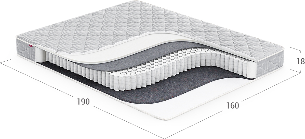 Надежно изолирует комфортные слои от соприкосновения с пружинным блоком и защищает материалы наполнения матраса от износа.