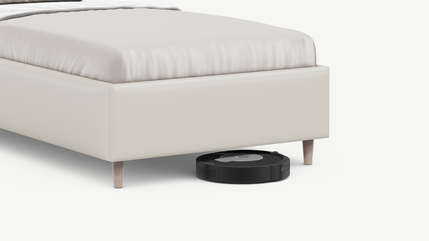 Благодаря высоким опорам под кроватью проходит робот-пылесос и легко проводится влажная уборка, что обеспечивает чистоту и порядок в доме.