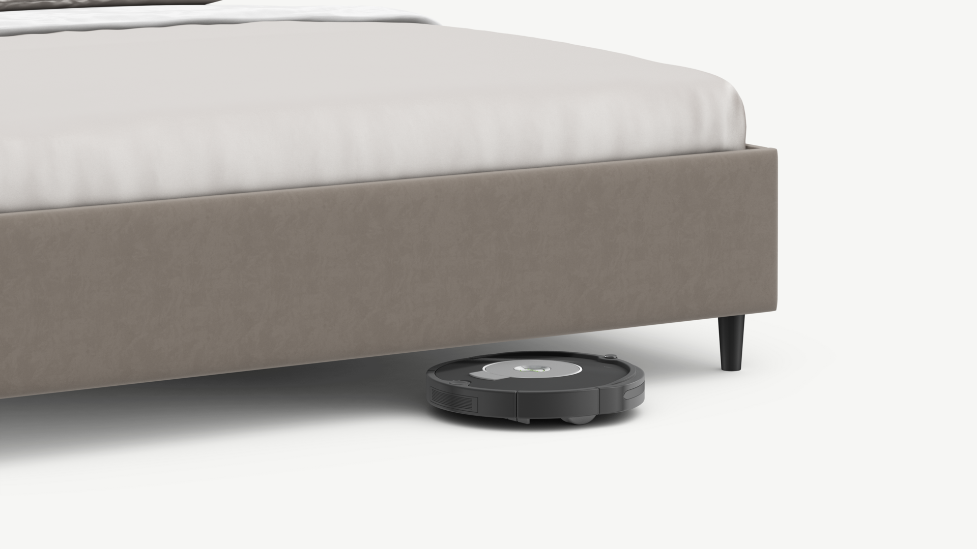Благодаря высоким опорам под кроватью проходит робот-пылесос и легко проводится влажная уборка, что обеспечивает чистоту и порядок в доме.