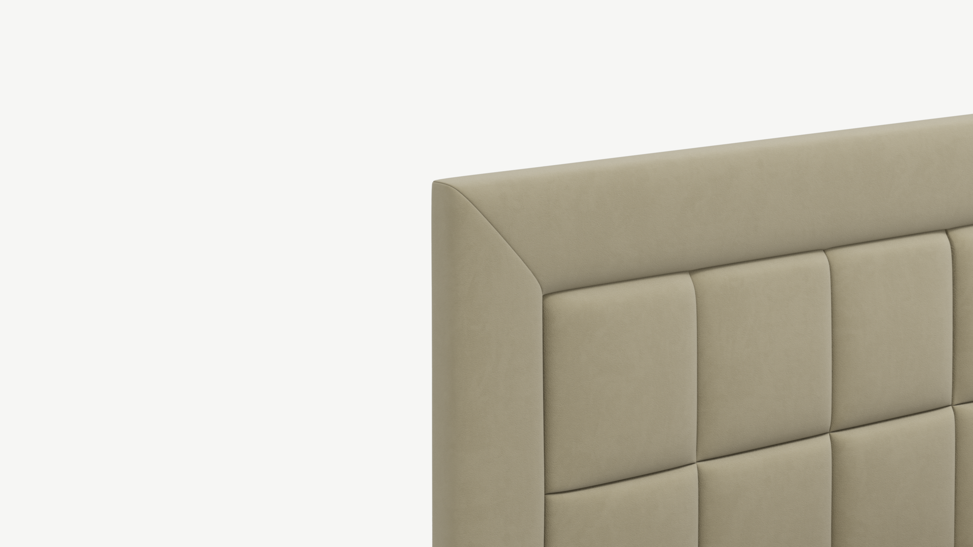 Кровать MOON FAMILY 1251 украшена объемной стежкой-рисунком. Особую выразительность стежка в крупный квадрат получает за счет глубины шва и фактурности проступающего рисунка. Помещенная в центр изголовья, стежка обрамлена тканью, словно картина – рамой. Формы MOON FAMILY 1251 оставлены максимально простыми. Едва заметные вертикальные шовчики на боковых царгах кровати добавляют образу шарма, удачно оттеняя уверенное звучание прямых и искусный декор изголовья.