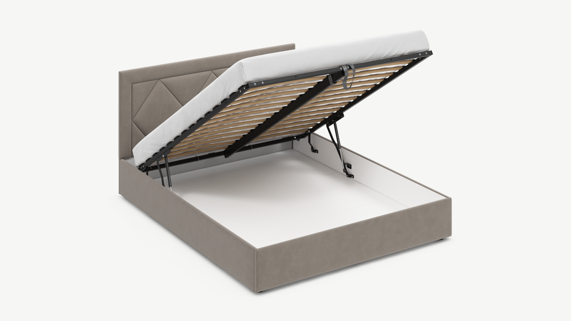 - Скрытая под основанием вместительная емкость без внутренних перегородок позволяет использовать всю площадь подкроватного пространства для хранения вещей.
