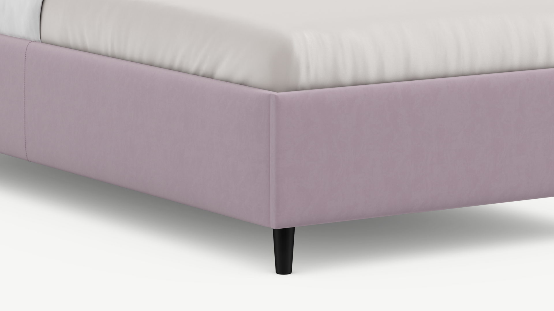 Царга, задающая пропорции, благодаря гладкости своей фактуры подчеркивает центральный элемент декора. Высокие опоры приподнимают фигуру кровати над полом и добавляют её образу визуальной легкости.