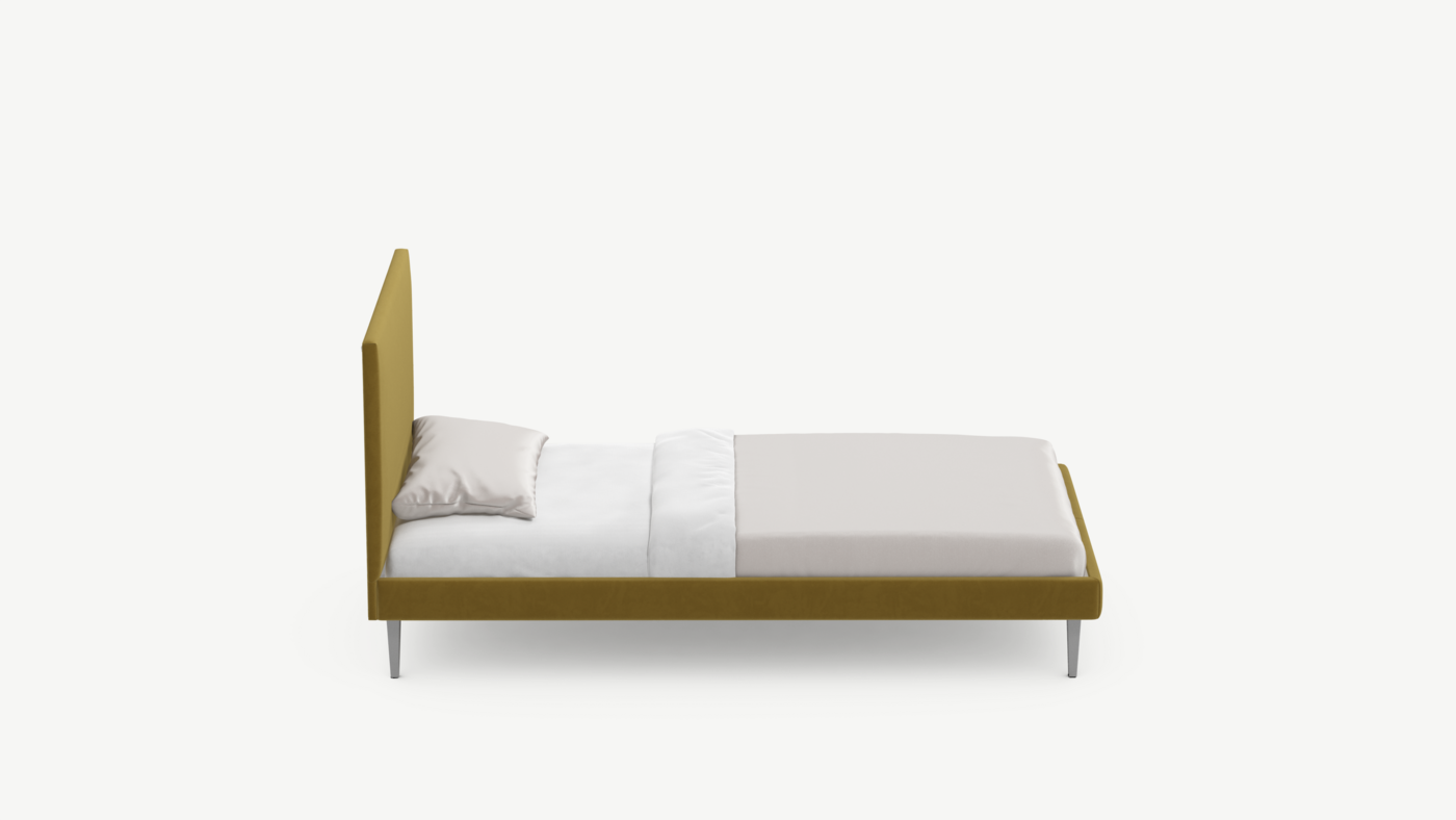 Кровать MOON FAMILY 1256 демонстрирует безупречный баланс изящных пропорций. Лаконичное изголовье, узкие царги и высокие опоры создают эффектный образ, привносящий в пространство спальни стильный и яркий акцент.