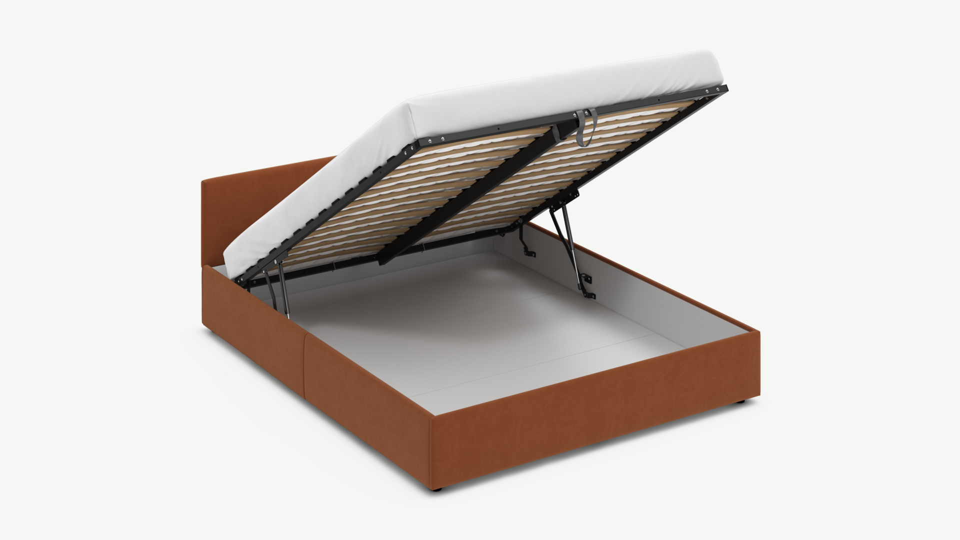 • Скрытая под основанием вместительная емкость без внутренних перегородок позволяет использовать всю площадь подкроватного пространства для хранения вещей.