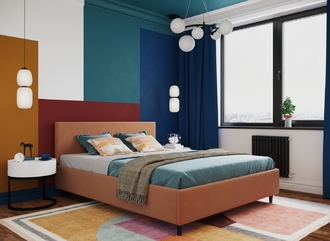 Фактура обивочного материала подбирается дизайнерами с учетом технологических и стилевых особенностей кровати.