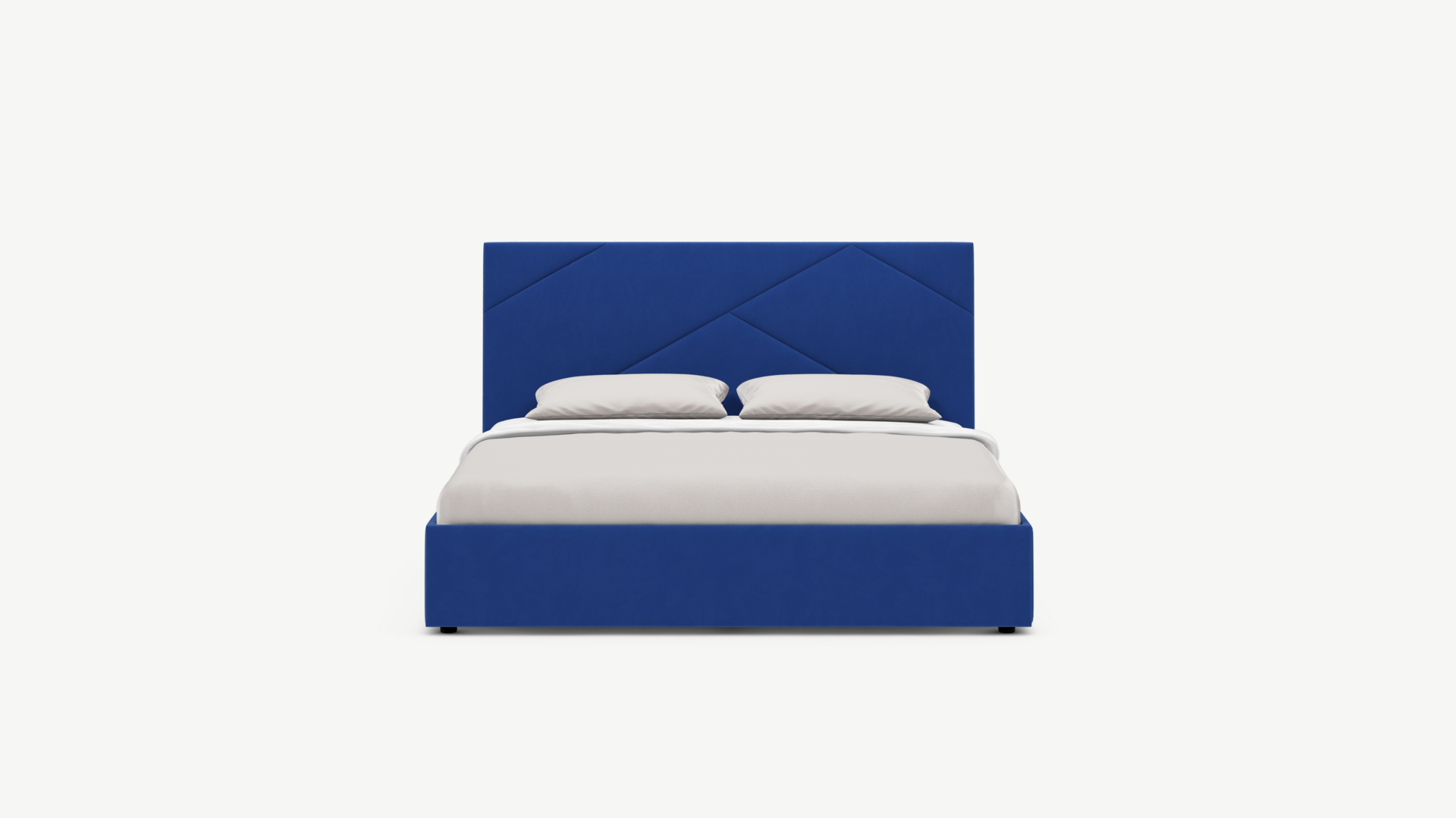 MOON FAMILY 1257 привлекает внимание оригинальным исполнением: широкие полосы ткани эффектно пересекают периметр изголовья, создавая на нем графический орнамент. Элегантным и практичным акцентом служат скрытые карманы, расположенные по его углам. Лаконичные формы объемных царг создают единый гармоничный образ и фокусируют внимание на центральном текстурном элементе кровати.