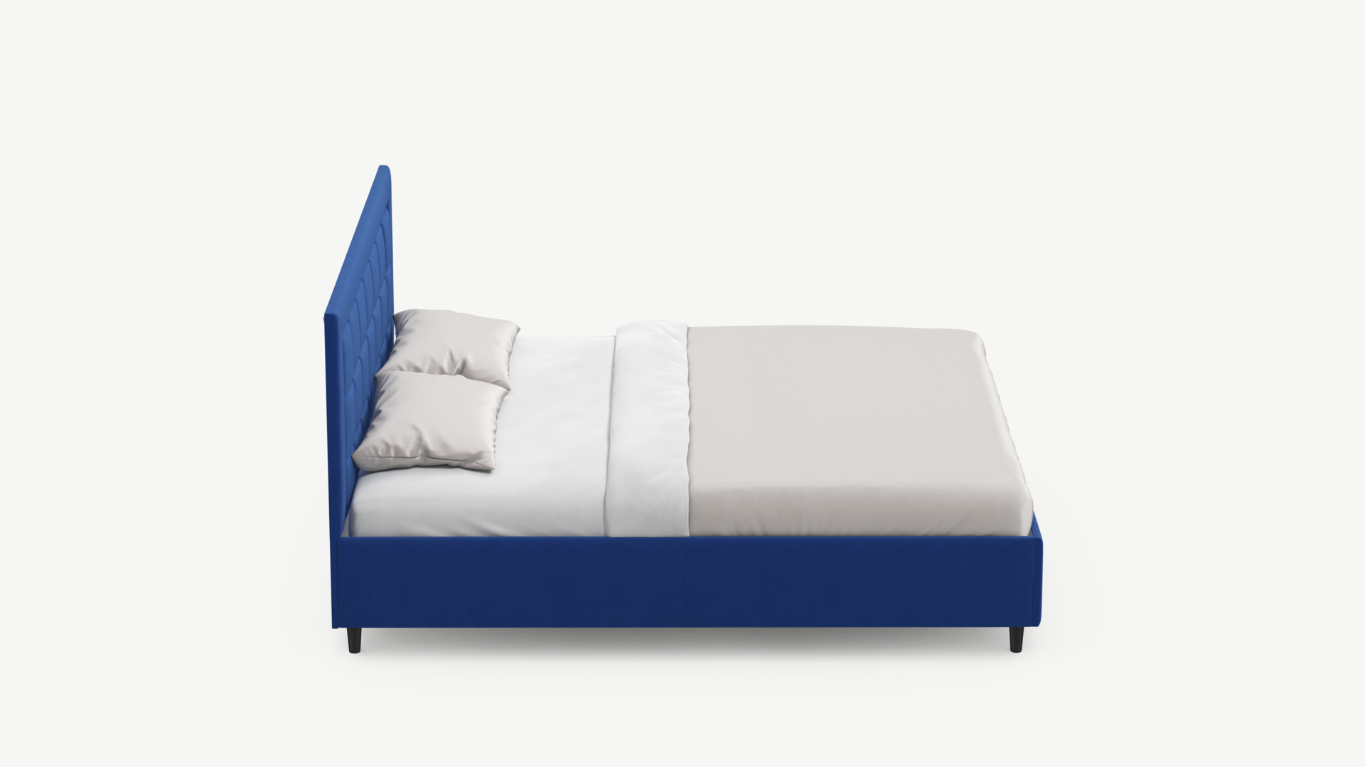 Стежка помещена в центр изголовья и обрамлена, словно картина. Объемные царги завершают цельную фигуру кровати и становятся гармоничным дополнением ее образа.