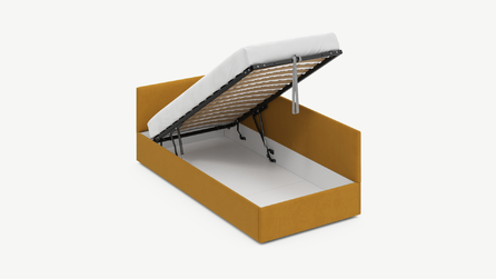• Скрытая под основанием вместительная емкость без внутренних перегородок позволяет использовать всю площадь подкроватного пространства для хранения вещей.