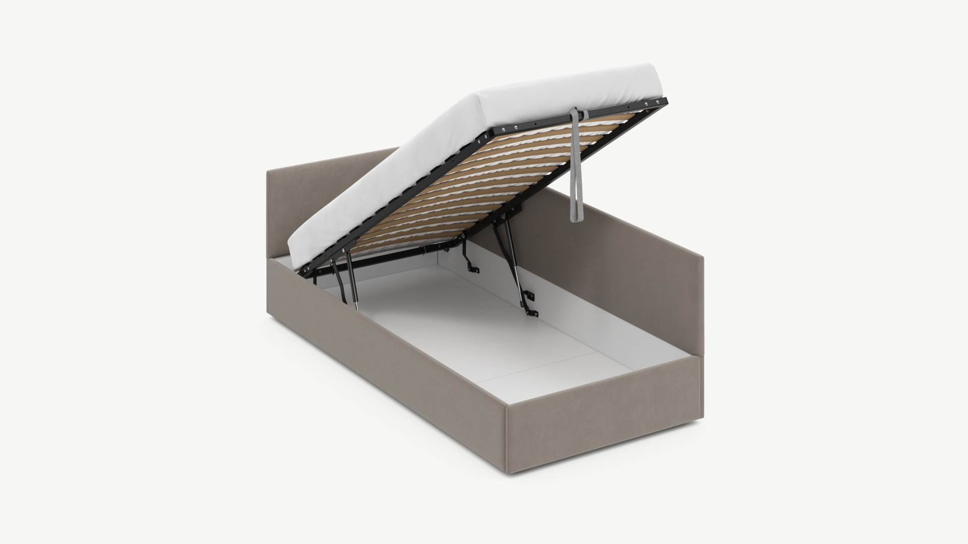 • Скрытая под основанием вместительная емкость без внутренних перегородок позволяет использовать всю площадь подкроватного пространства для хранения вещей.