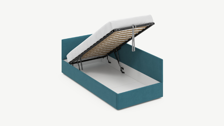 • Скрытая под основанием вместительная емкость без внутренних перегородок позволяет использовать всю площадь подкроватного пространства для хранения вещей.