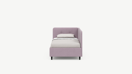 Угловая односпальная кровать MOON FAMILY 1253 с мягкой спинкой и изголовьем обладает округлыми формами, привносящими в интерьер нотки нежности. Изголовье, украшенное пуговицами, добавляет окружающему пространству шарм и уют. Высокие опоры придают кровати визуальной легкости, а также обеспечивают удобство во время уборки.