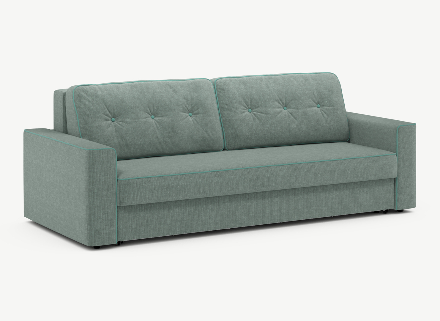 Пользуюсь диваном уже год довольна цветом у меня морская волна и бежевый кант. Это не лёгкий, а массивный вариант в интерьере. Контрастный приятный цвет насыщенный и не слишком яркий. Сейчас используем как ежедневное спальное место для тех кто любит не слишком мягко. Подушки довольно большие, больше нравится лежать, для сидения предпочитаю подушки поменьше. Довольна сервисом при покупке понравился продавец отработала на все 100% ТЦ Арена г. Воронеж. Доставили без проблем. Первое время неделю-две был химический запах от внутреннего наполнения дивана, меня об этом предупредили, потом выветрился и все нормально. Рекомендую!
