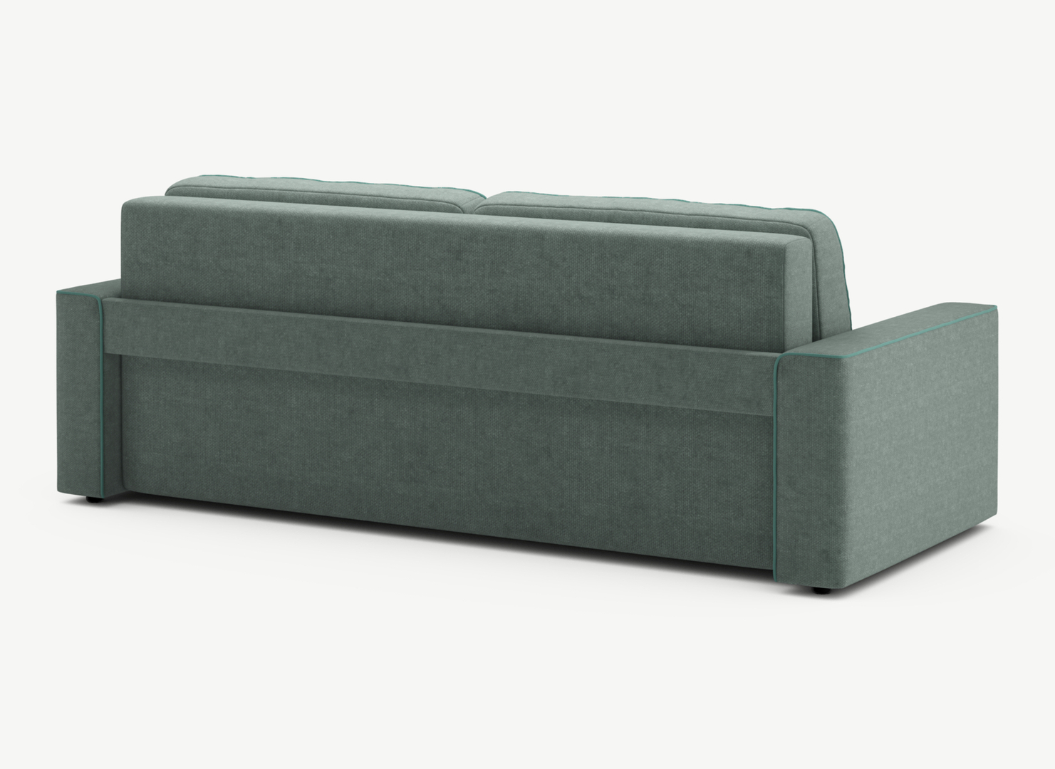 Красивый вид дивана со всех сторон. Спинка дивана, полностью облицованная обивочным материалом, придает изделию эстетичный внешний вид, завершает его образ и позволяет ставить диван в центре комнаты и/или зонировать пространство.