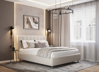 Оформите образ кровати, выбирая обивочный материал, который подчеркнет звучание Вашей спальни и отразит Ваш вкус. Обратите внимание на однотонный гладкий велюр, который усиливает объемную фактуру стежки.
