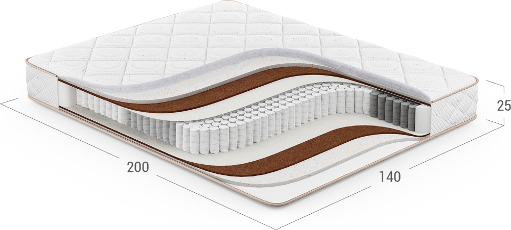 Значительно повышает жесткость спального места, обеспечивает равномерную поддержку тела во время сна. Полностью состоит из натуральных материалов. Добавляет прочности всей конструкции матраса.