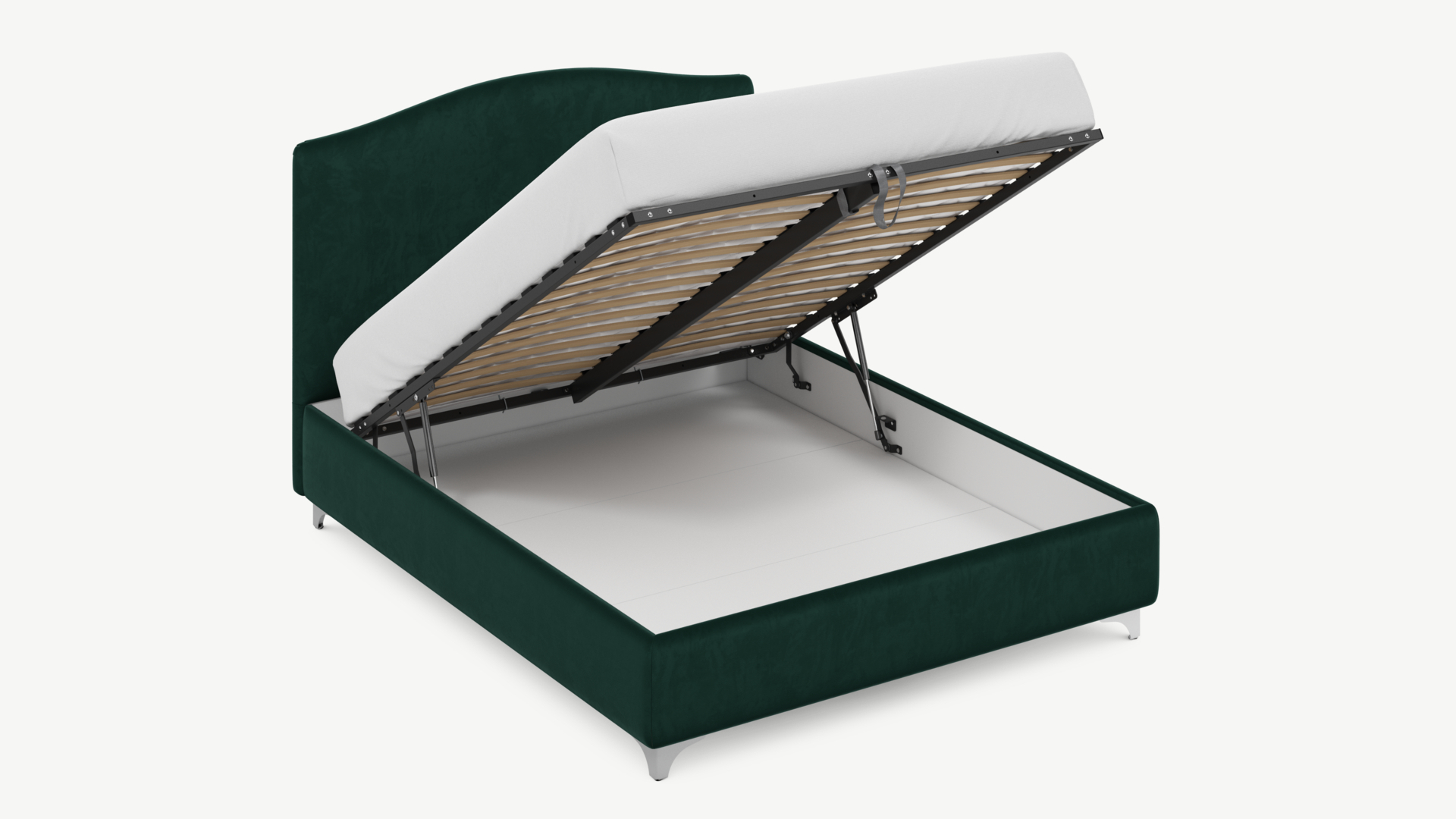 • Скрытая под основанием вместительная емкость без внутренних перегородок позволяет использовать всю площадь подкроватного пространства для хранения вещей.
